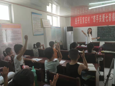 为深入贯彻习近平新时代中国特色社会主义思想和党的十九大精神,丰富大学生暑期生活,让大学生在校所学知识应用于实践,积累经验、增加经历、增长才干,更好的接触乡村、感受乡村教育与生活,为乡村建设做贡献。7月12日,山东青年政治学院外国语学院蒲公英支教队走进肥城,开展“牵手关爱,七彩假期”的支教活动,五个小队分别走进五个不同的村镇,其中五位志愿者来到边院镇官庄村,在村委的爱心书屋里开始他们的支教生活。