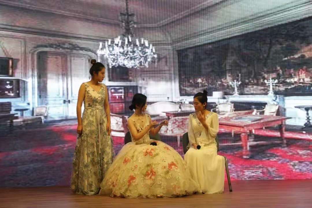英语《Day of Yore》、西班牙语《追忆似水年华》紧扣“不负相遇”这一主题。应用德语话剧《罗恩格林》情节紧张,扣人心弦。商务日语《名侦探柯南—生日酒之谜》带我们重温童年的经典。应用阿拉伯语话剧《辛巴德航海历险记》生动形象。应用法语《项链》原汁原味地还原了法国名著,让我们通过剧情了解19世纪80年代法国的社会风气。应用韩语舞台剧《사랑을 했다》,为我们带来了西式与传统韩式相结合的婚礼,尽显出应用韩语同学们的典雅。晚会从节目构思、设计到选排,将专业和艺术表演完美结合。