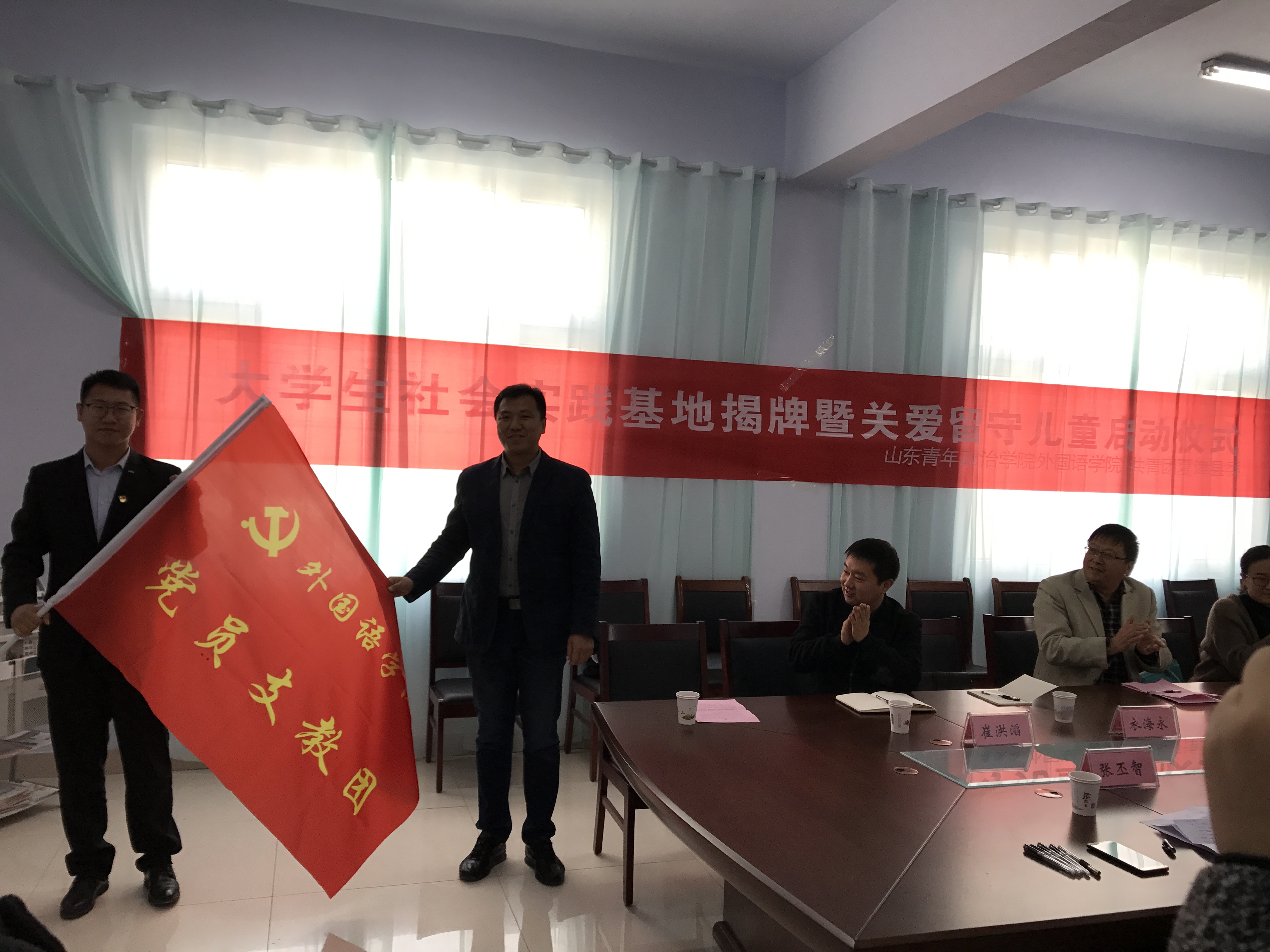 为深入学习宣传贯彻落实党的十九大精神,引导山青学子勇担时代使命,助力地方建设,创新学校党建团建工作。11月17日,我校大学生社会实践基地揭牌暨外国语学院关爱留守儿童活动启动仪式在夏津县田庄乡闫庙小学举行。夏津县委常委、副书记李超,外国语学院院长卢杰出席启动仪式,夏津团县委、学校团委、外国语学院主要负责同志及“党员支教团”社会实践团队代表参加了此次仪式。