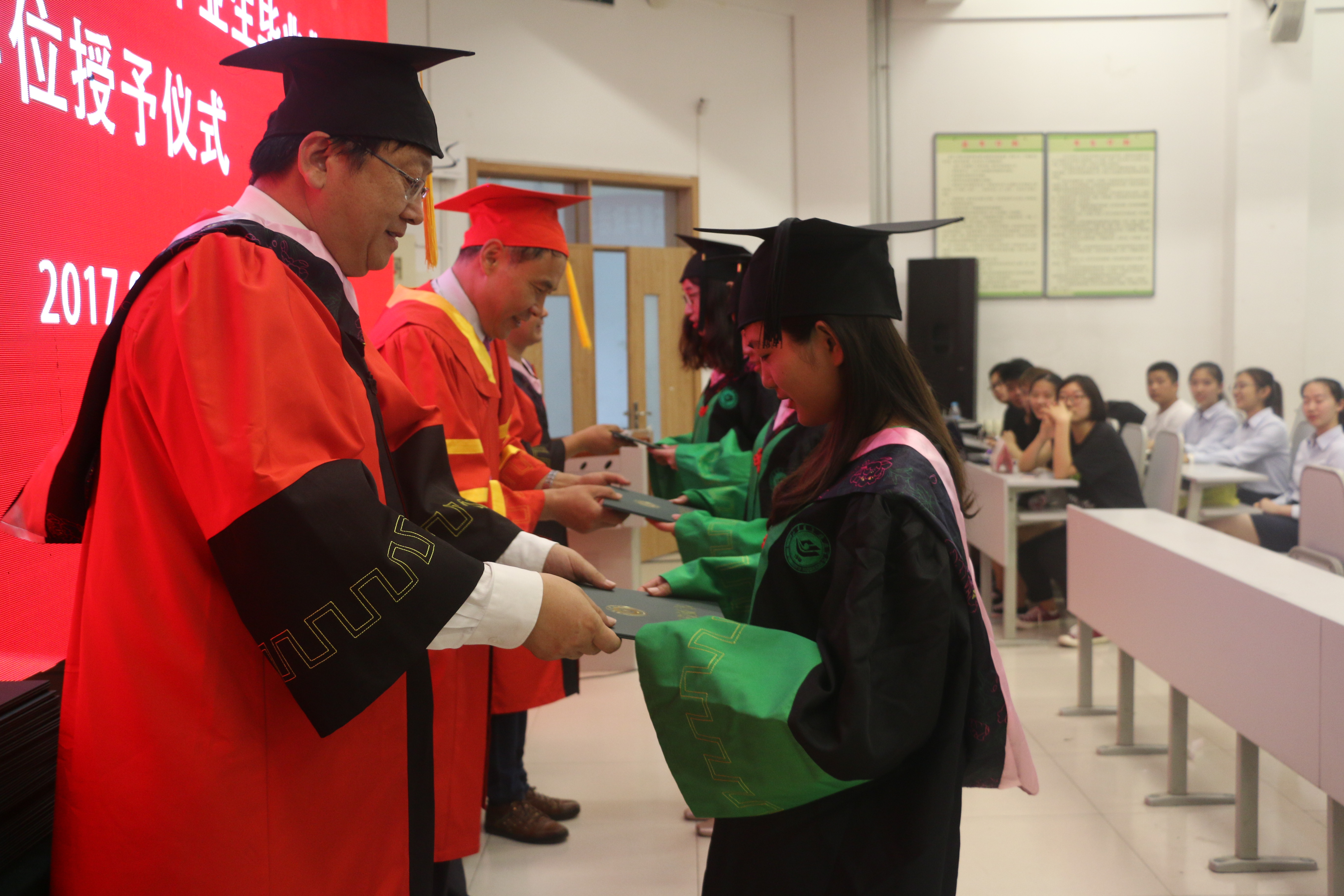 毕业典礼在庄严的国歌声中拉开帷幕。校学术委员会副主任陈雨海、外国语学院分学术委员会主任卢杰、副主任邵光庆为获得学士学位的毕业生逐一颁发了学士学位证书。李振杰为省级优秀毕业生和校级优秀毕业生获得者颁发荣誉证书。