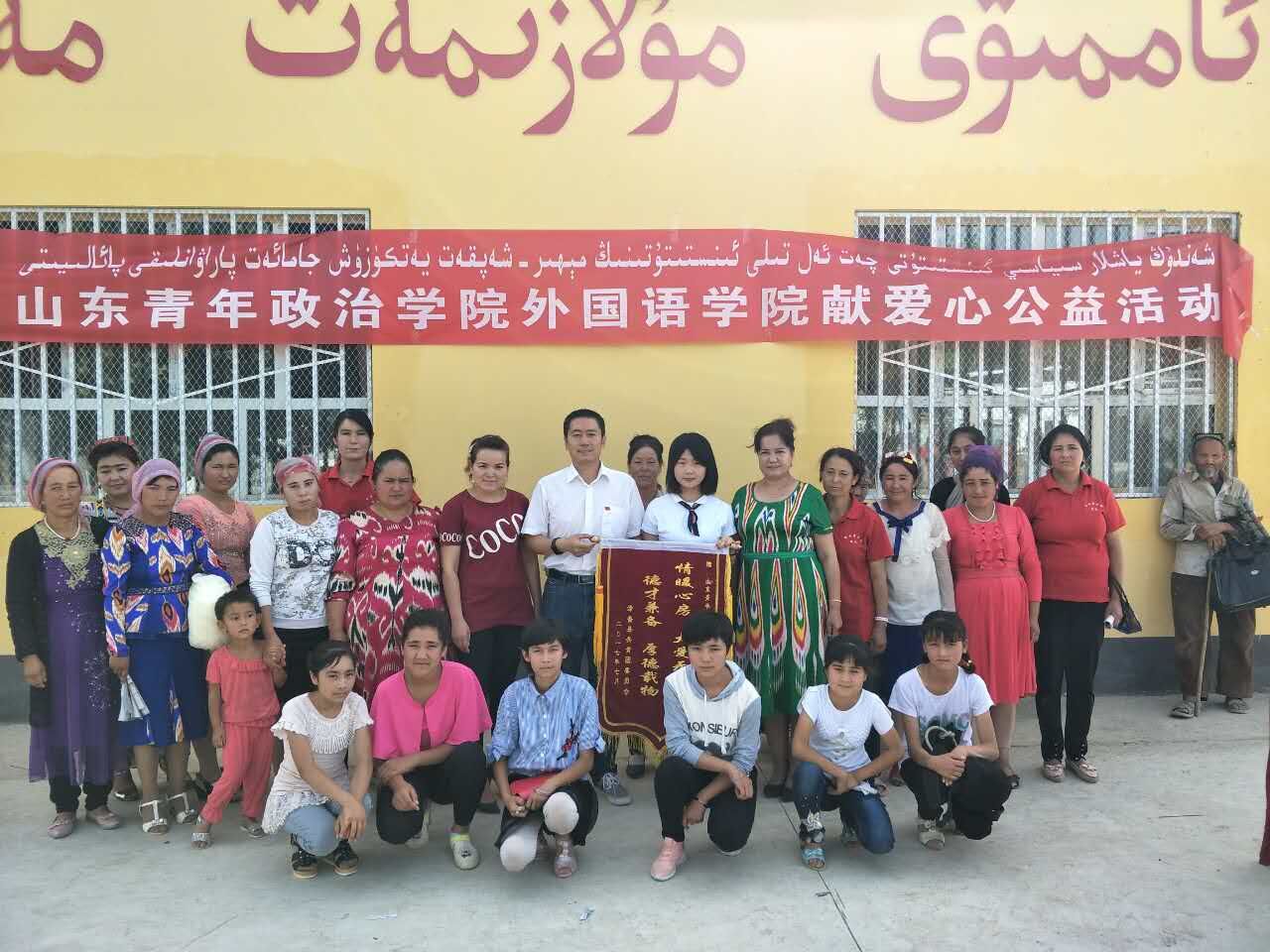 2017年7月10日上午,我校2016届西部计划志愿者张明媚来到泽普县阿依库勒乡阿依库勒村开展献爱心公益活动,在她的倡议下,600多件来自山东青年政治学院捐赠的“爱心衣物”分发给了该村100余名贫困群众,她用自己的微行动为志愿者生涯画上了一个圆满的句号。