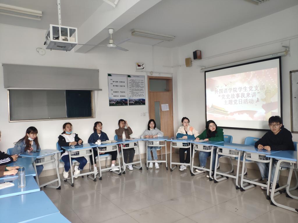 为贯彻落实习近平总书记在党史学习教育动员大会上的重要讲话精神,教育引导学生党员提高政治素养,增强党性修养,4月15日,外国语学院学生党支部开展“党史故事我来讲”主题党日活动。