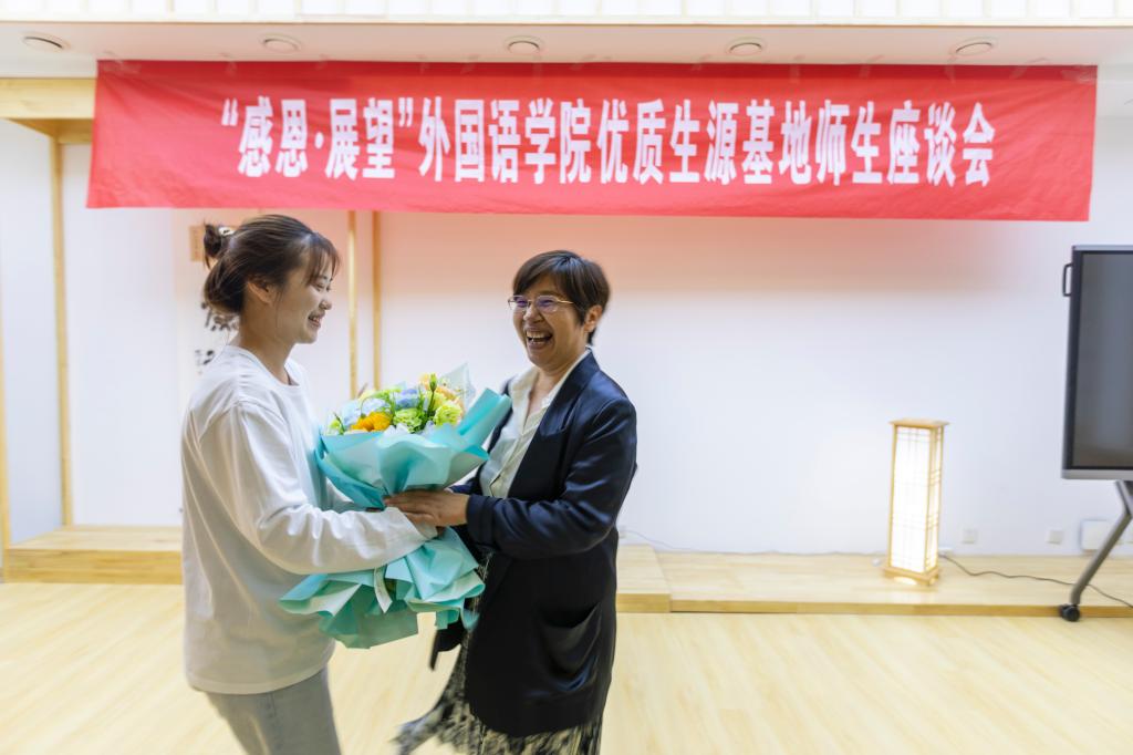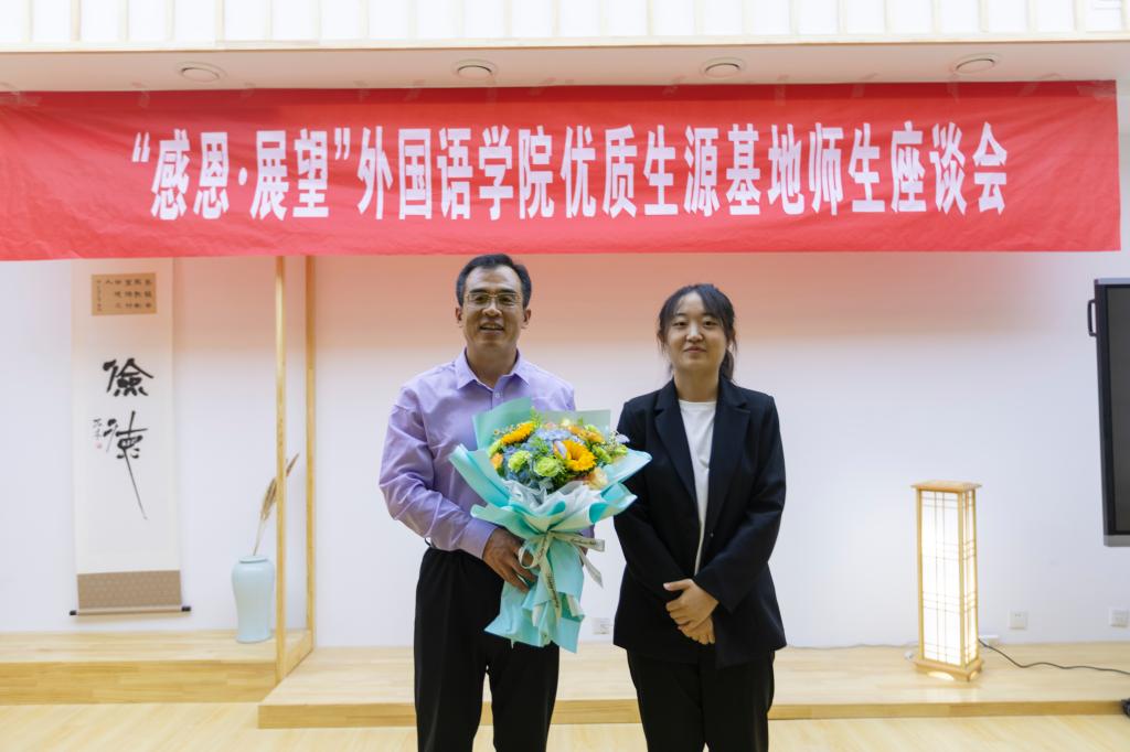 在“感恩母校,展望未来”主题汇报会上,由生源基地在校生、优秀毕业生及日语协会部分学生组成的报告团,用外语诗朗诵、民乐演奏及口头演讲等方式展示了他们在我校学习期间取得的进步。这一环节,学生充分表达了对母校的感激之情与个人的未来规划,他们努力拼搏、青春激扬的精神风貌给来宾留下了深刻印象。2017级英语专业张璇说,“我是在潍坊滨海中学毕业的学生,而今年我又要从山青院毕业了。回首这些年走过的路,我感谢母校的培养,感谢自己的努力。我今年已经取得中小学教师资格证书,即将要参加教育系统事业单位考试,特此向潍坊滨海中学、向山青院汇报。”德州市伊璞高级中学校长于子芹表示,学校近两日的安排,让中学的校长们感受到了学校的用心、用情、用力。下一步会继续加强与学校的合作,希望能够给学校输送更多更优异的学生。