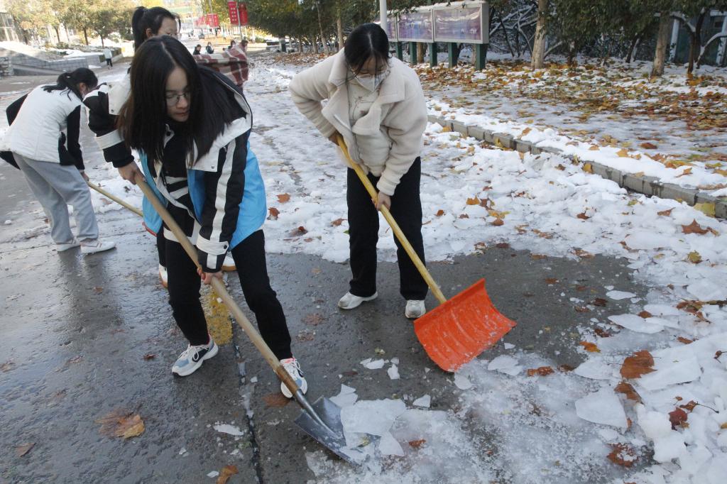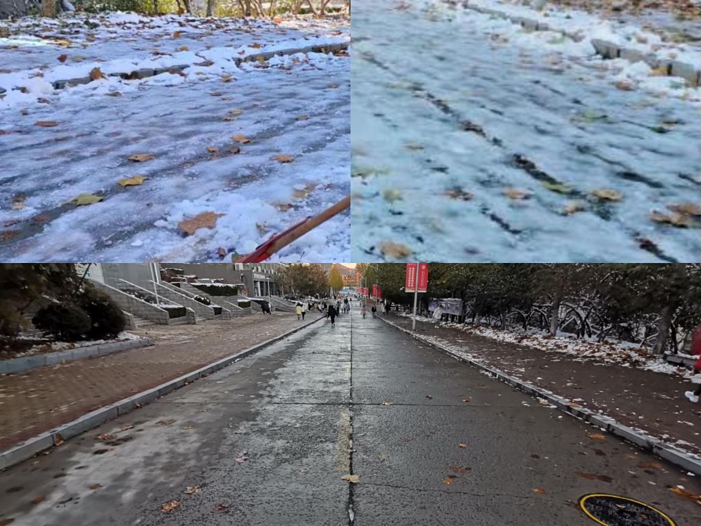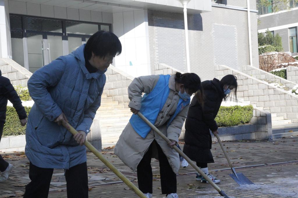 伴随立冬节气悄然而至,山东迎来大范围寒潮天气,济南突降暴雪,积雪深度一度达到10-19厘米。雪天景虽美,但伴随着车轧人踩,道路结冰、雪冰相混、天冷路滑,给师生出行带来了安全隐患。