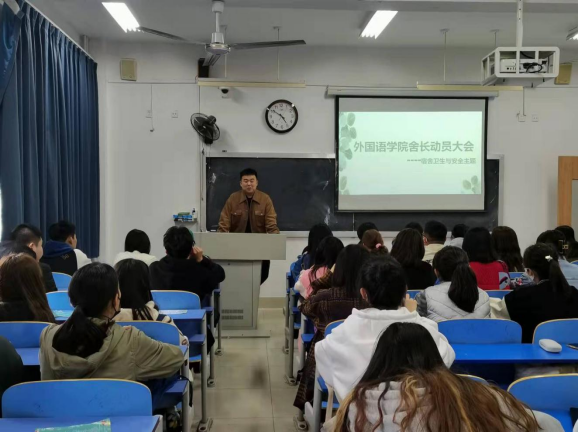 为进一步加强学生宿舍管理,引导学生养成良好的行为习惯,充分发挥宿舍育人功能,营造温馨、和谐、安全的学习生活环境,3月9日,外国语学院召开宿舍卫生安全教育大会暨优秀宿舍经验分享会。外国语学院辅导员、学院大自委生活部志愿者、部分舍长、班长参加会议。