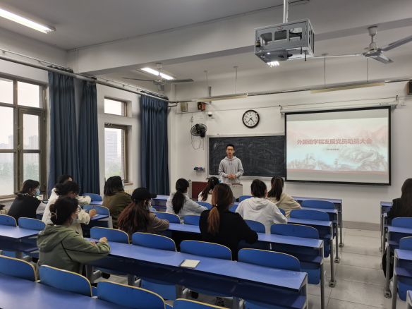为贯彻落实新时代党的建设总要求和新时代党的组织路线,严格党员发展程序,保证新发展党员质量,5月8日,外国语学院党委召开发展党员动员大会,部分学生党支部书记、2022年上半年发展对象参加本次会议。