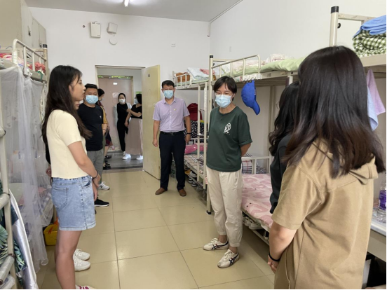 会后,学院领导邵光庆、范红伟、崔师锐带领全体辅导员前往公寓楼看望慰问2022级专升本新生和已返校老生,深入宿舍了解学生的生活环境和思想状况,进一步强调疫情防控、宿舍安全和宿舍卫生等具体问题,引导学生养成积极健康的生活习惯。