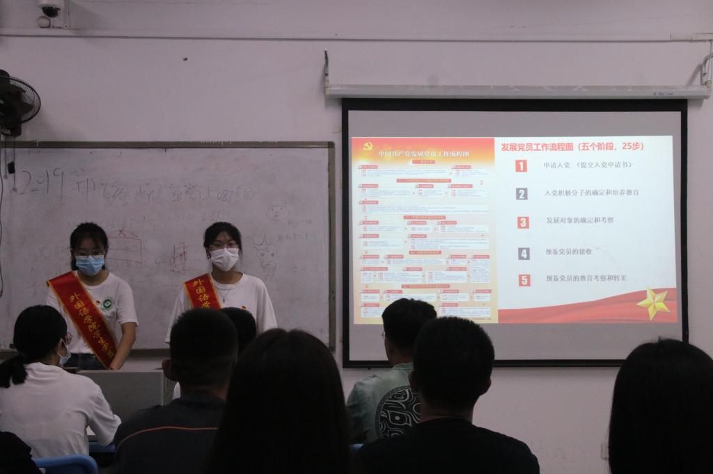 为充分发挥大学生“党员领航员”的先锋模范带头作用和榜样示范引领作用,8名学生党员领航员利用新生晚自习时间走进班级进行宣讲,将发展党员流程分为申请入党、入党积极分子的确定和培养教育、发展对象的确定和考察、预备党员的接收、预备党员的教育考察和转正五个阶段,细分为25个步骤,向同学们进行了细致的讲解。带领同学们学习了党史、党和国家的大政方针政策等。听完宣讲后,部分心存疑惑的新生问到:“假如不是团员,怎么入党?”“未满18周岁,可以入党吗?”“学习成绩要求严格吗?”“需要提前递交入党申请书吗?”等等。面对新生提出的问题,领航员耐心解答,并鼓励同学们努力学习党的基本知识,以实际行动积极向党组织靠拢。