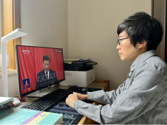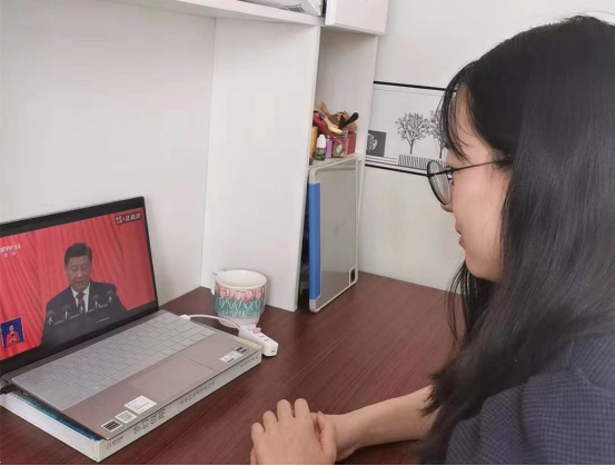 外国语学院英语专业青年教师郭思悦:党的二十大开幕了,作为党龄一年有余的新党员,像幼儿园小伙伴一样,搬着小板凳,坐在屏幕前,认真听讲。有些内容,虽然不能完全吃透,但是观看全程,心潮澎湃。同时再次回想起入党誓言,警醒自己,光有一颗赤诚之心远远不够,从自己做起,在工作、家庭、生活等各方面发挥党员先锋作用,就是参与祖国宏图大业的基本方式。