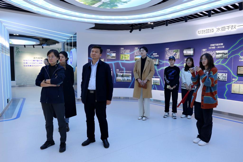 范红伟一行首先前往济西水文巡测基地参观调研,大家依次参观水文气象观测场、水土保持监测站、水生态展厅、水质水生态实验室,并听取了专业人员的讲解,对济南水文生态环境的研究有了更加深入的了解。随后前往滨河商务中心参观调研泉城水文数字化展厅,在泉城水文数字化展厅,大家通过MR、三维图像、AI语音、立体现实等高科技手段对泉城水文故事进行了全方位的沉浸式聆听,使泉城水文筚路蓝缕、水亘千秋的故事印刻于胸。最后前往黄台桥水文站参观,通过实地探访和观看水文站百年历史视频,了解到这座“百年老站”在城市防洪调度和水资源管理方面发挥的作用。