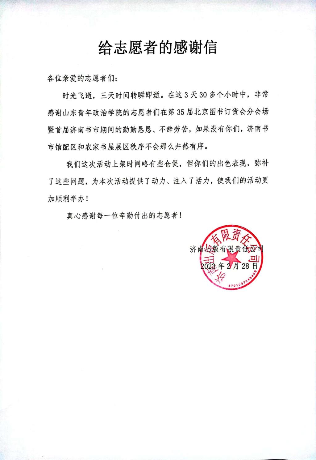 我校青年志愿者以蓬勃的面貌、热情的态度、专业的服务得到了承办方和社会各界的充分肯定。图书馆、外国语学院高度重视本次展会志愿服务工作,力求在经济持续复苏、规划落实加速的后疫情时代,为图书出版行业盛会、泉城开年大事做好保障服务。始终坚持“一强化两拓展”战略指导,着力提升山青志愿服务品牌影响力和美誉度。同时,积极搭建青年师生实践锻炼平台,创新党建带团建工作路径,培育红色实践团队,着力提升组织育人实效。