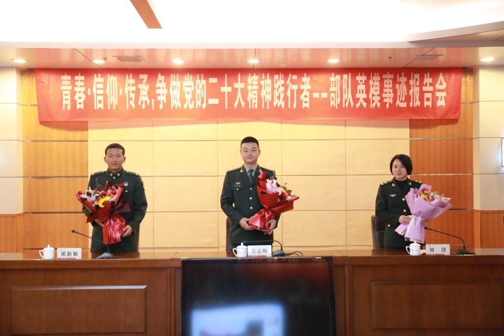 报告会上,师生首先共同观看反映部队训练战斗生活的《铁血尖刀》专题片。71770部队92分队副分队长、第20届“中国青年五四奖章”获得者、一等功臣吴志辉以《成功源于梦想,奋斗铸就辉煌》为题,以自身参军报国、把个人理想抱负融入强军梦的实践以及在国际军事比赛为国争光、屡立战功的经历,生动展现了军人以信念为本铸就的特殊魂魄、以使命为要锻造的特殊战力、以心胜为王锤炼的特殊品格、以血气方刚承载的铁血军魂。战士刘倩、翟新颖从自身携笔从戎经历出发,讲述了作为女兵和入伍大学生士兵的坚韧力量,通过自己的亲身经历和服役感悟,与同学们分享新时代青年对“爱国”的青春注解。广大师生深切感受到了人民军队英勇无畏、勇往直前、不怕牺牲的精神, 深刻体会到社会的和谐稳定和人民的幸福生活离不开强大的国防支撑。