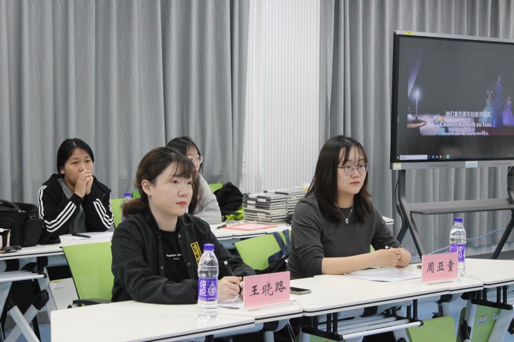 首先进行的是2022级德语个人赛。虽然同学们学习德语仅半年有余,但每位选手都积极表现,声情并茂,展示了扎实的专业基本功。在作品《小猪佩奇》中,同学们感受到了浓浓的童趣;在《你的名字》里,同学们体会到青春的美好;在《怦然心动》中,同学们品味了爱情的懵懂…… 紧张激烈的个人赛之后是2022级团体赛。参赛同学配合默契,口语自然流畅。观众们在快与慢、柔与刚的变奏中感受到了德语的节奏感,情绪也随着剧情有张有弛,时而欢声笑语,时而陷入沉思。随后开展的是2021级学生比拼。他们发音标准、感情饱满,流畅的口语表达与充沛的感情在短短的配音片段中得以充分展现。