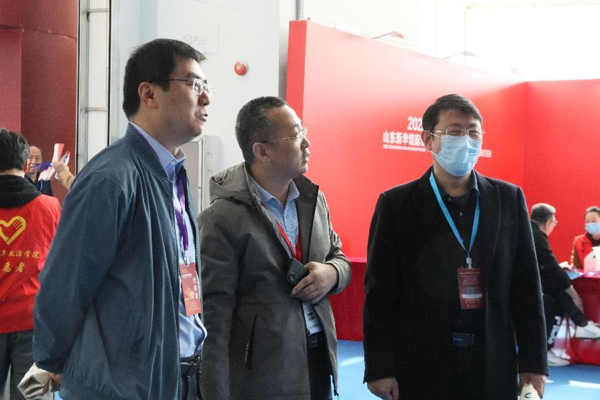 我校图书馆副馆长鲁鹏、信息工程学院党委副书记马骋、外国语学院党委副书记崔师锐一行前往济南国际会展中心慰问我校参与服务新华馆配会的志愿者,并就进一步深化与山东省新华书店的合作进行交流。