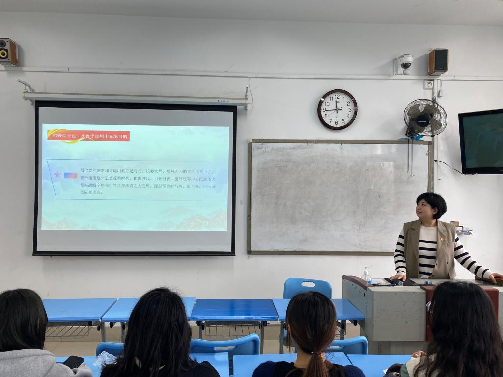 彭梦迪领学了习近平总书记在学习贯彻习近平新时代中国特色社会主义思想主题教育工作会议上的重要讲话精神。她强调,在全面贯彻党的二十大精神的开局之年、全面建设社会主义现代化国家新征程起步之际,深入开展学习贯彻习近平新时代中国特色社会主义思想主题教育,是贯彻落实党的二十大精神的重大举措,学生党员领航员要带头自觉增强“四个意识”、坚定“四个自信”、坚决做到“两个维护”,牢记“国之大者”,要在以学铸魂、以学增智、以学正风、以学促干上下功夫、见实效,在日常学习生活中担负起“传”“帮”“带”的重任,切实发挥党员先锋模范作用。