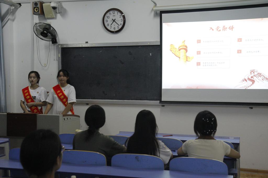 为增强2023级新生对于中国共产党的了解与认识,提高同学们的思想觉悟,激发大家的入党积极性,进一步吸引优秀青年学生积极向党组织靠拢,9月12日,外国语学院党委组织学生党员领航员分批次深入新生班级,开展2023级新生入党启蒙教育。