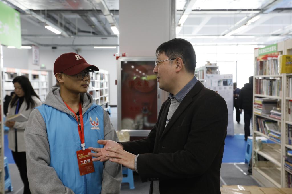 展会期间,图书馆馆长毕荣,外国语学院院长邵光庆、党委书记崔师锐来到山东新华书店集团物流中心看望慰问馆配会志愿者,他们与一线志愿者进行亲切交谈,详细询问了志愿者岗位分布、工作职责、用餐用水等情况,充分肯定了山青志愿者立足岗位、倾情奉献的出色表现,鼓励志愿者们在书展活动中锤炼本领、学思践悟,将感悟转化为学习中的不竭动力,在更广阔的舞台施展才干。并就进一步深化与山东新华书店集团的合作进行交流。
