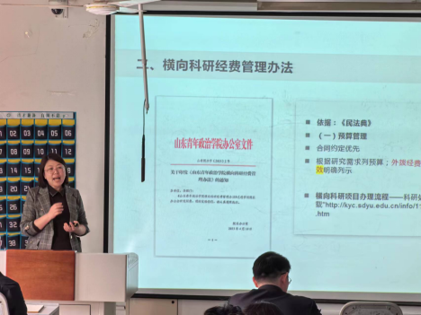 在政策宣讲过程中,满璐从现行科研经费政策概况、纵向科研经费管理办法、横向科研经费管理办法和其他经费管理规定四个方面详细介绍了目前学校科研经费制定的政策依据、科研经费的使用范围、使用方式和使用程序以及审计要求等,重点介绍了横向科研经费的政策调整方向,帮助老师识别经费支出的“问题”。她表示,希望这次宣讲能使老师们加深对科研经费使用规则的理解,帮助老师们解决在科研经费支出中遇到的难题,规范科研经费的使用,潜心科研,产出更高质量的科研成果。