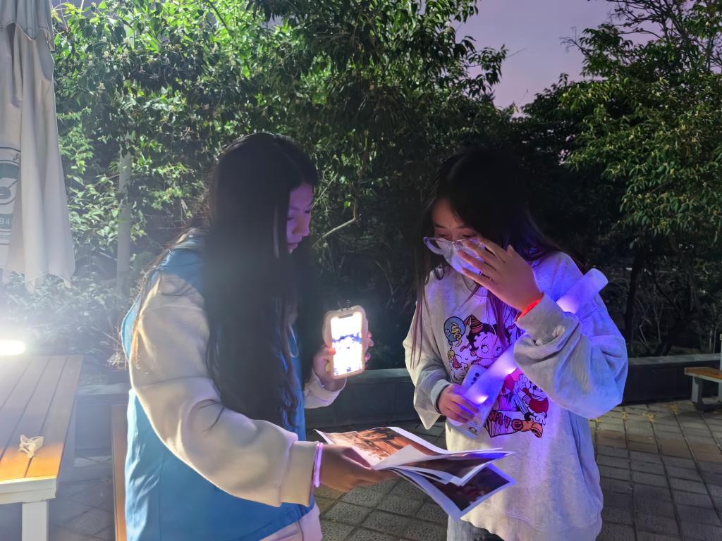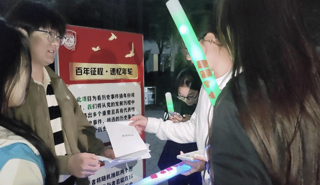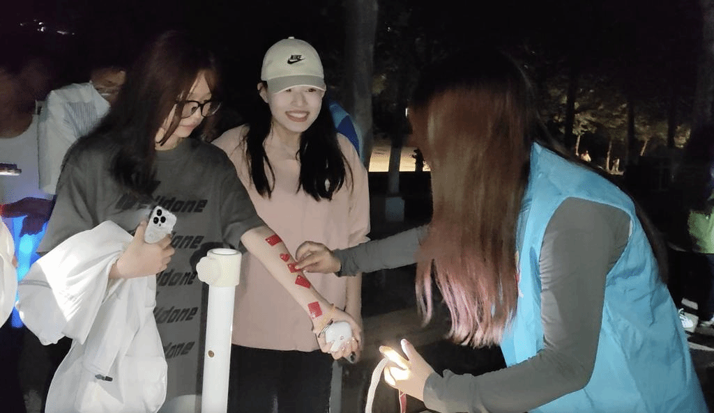 本次红色印迹户外打卡活动将红色印迹和运动元素有机结合,形成“思想引领+体育运动”的体育育人创新模式。特别设置了东操场为起点,西操场为终点,校园各处5个打卡项目点。同学们在打卡的过程中,需要完成“百年征程·速忆年轮”“红图忆事·岁月流芳”“红色情怀·问答传承”“五四风华·Emoji寻踪”“红韵悠扬·高唱团歌”五项红色趣味活动打卡,获得通关徽章。在打卡过程中,大家在红色知识竞答中追忆百年往事,在红色图片识图中重温革命奋斗,在齐唱团歌时铭记青春旋律,加深了参与者对红色历史的理解和记忆,每一个人都乐在其中、学在其中。2023级西班牙语专业孙菱徽说:“荧光闪烁,点亮校园的夜空;汗水滚烫,点燃青春的活力。此次活动不仅让我们感受到了运动的魅力,更让我们从红色文化中感悟到赓续红色血脉的重要性,我们作为青年人应该勇挑重担,让红色基因薪火相传,在青春的赛道上奋力奔跑,争取跑出我们这一代青年的最好成绩。”