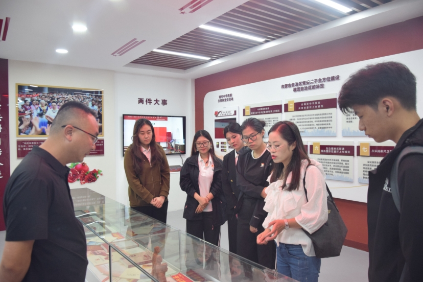 传承“石榴籽”精神,传承民族情谊。社会实践团队参观了铸牢中华民族共同体意识主题教育展厅,借助文字、图片、VR、实物等多重方式,全面深刻直观地感受到化德县各民族之间交流交融、团结进取、共同发展且紧密团结的新时代“石榴籽”精神,深切体会了休戚与共、荣辱与共、生死与共、命运与共的中华民族共同体理念。