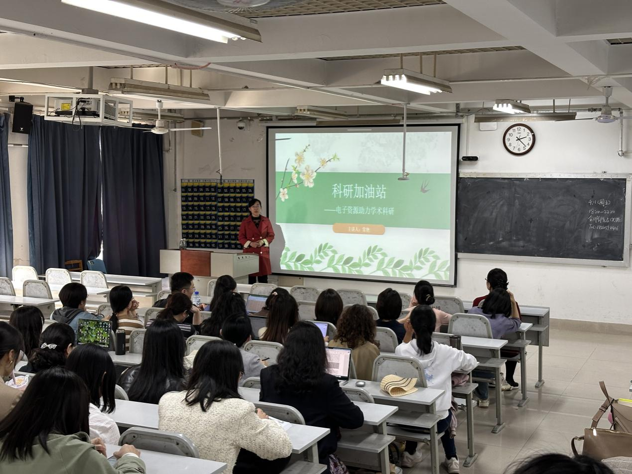 4月10日,外国语学院举办题为“科研加油站——电子资源助力学术科研”的专题讲座。本次讲座特邀学校图书馆信息咨询部主任常艳担任主讲,外国语学院全体教师和部分学生参加。讲座由外国语学院副院长管秀兰教授主持。