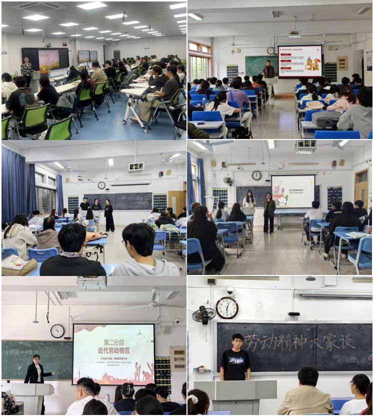 深化思政融合,构建育人常态——“劳动精神大家谈”主题班会。学院组织全院班级全覆盖开展“劳动精神大家谈”主题班会,推动劳动教育常态化长效化。班会以劳模事迹分享为切入点,通过实例研讨、实践交流等多元模式,引导学生围绕“劳动创造幸福”核心命题展开深入讨论;并结合校园清扫、社区服务等实践经历分享真切感悟,将劳动教育与思政教育有机融合,以沉浸式学习推动劳动精神入脑入心、见行见效,为构建全员参与、全过程贯穿、全方位覆盖的常态化育人机制筑牢思政根基。