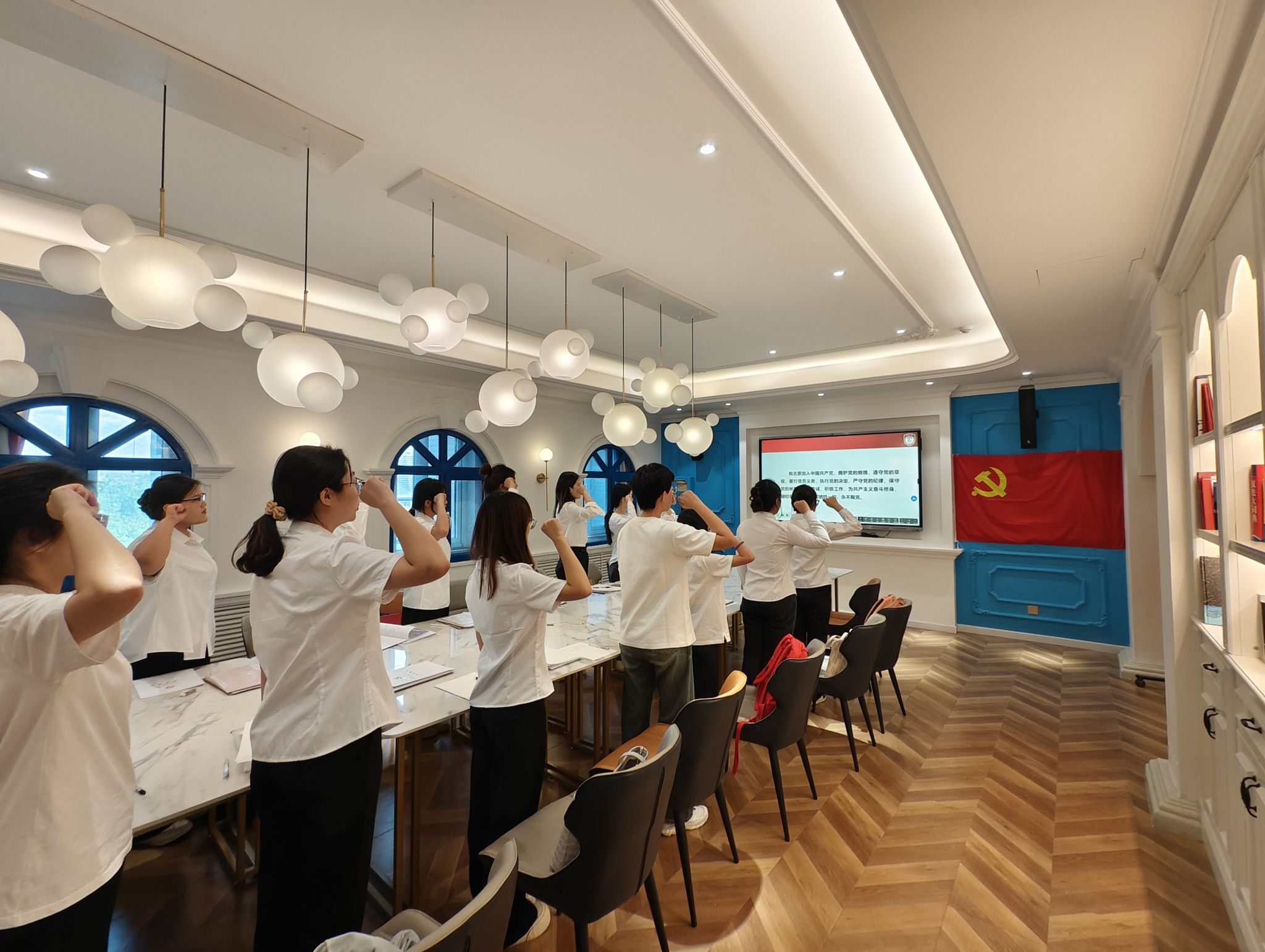 重温誓言,坚定信念。6月27日,学生党员面向党旗,在领誓人的带领下,高举右拳,庄严地重温入党誓词。铿锵有力的誓言回荡在现场,让每一位党员回顾入党时的庄严承诺和奋斗决心,进一步坚定理想信念,强化党员身份意识,提醒自己时刻以党员标准严格要求自己,永葆共产党员的先进性和纯洁性。