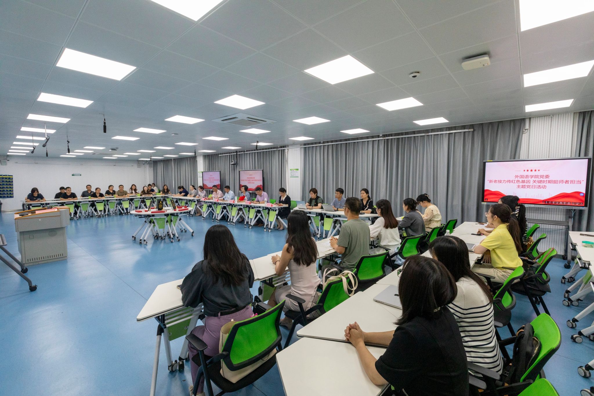 在第41个教师节即将到来之际,9月4日,外国语学院党委以“新老接力传红色基因,关键时期挺师者担当”为主题,召开“语思语享”系列主题党日活动。学校党委副书记冯素玲,外国语学院党政班子成员,新进青年教师、各党支部支委、专业教师代表等参加活动。