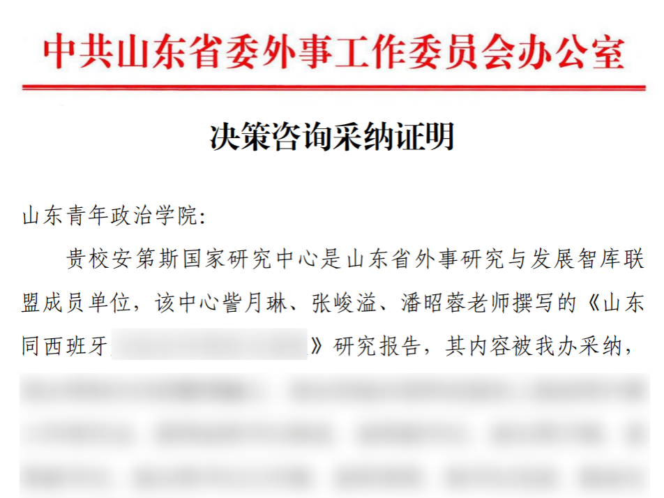 9月,受省委外办委托,安第斯国家研究中心围绕山东与西班牙经贸、文化、教育等领域交流合作现状等方面开展国别研究,最终形成3000余字的咨政报告。