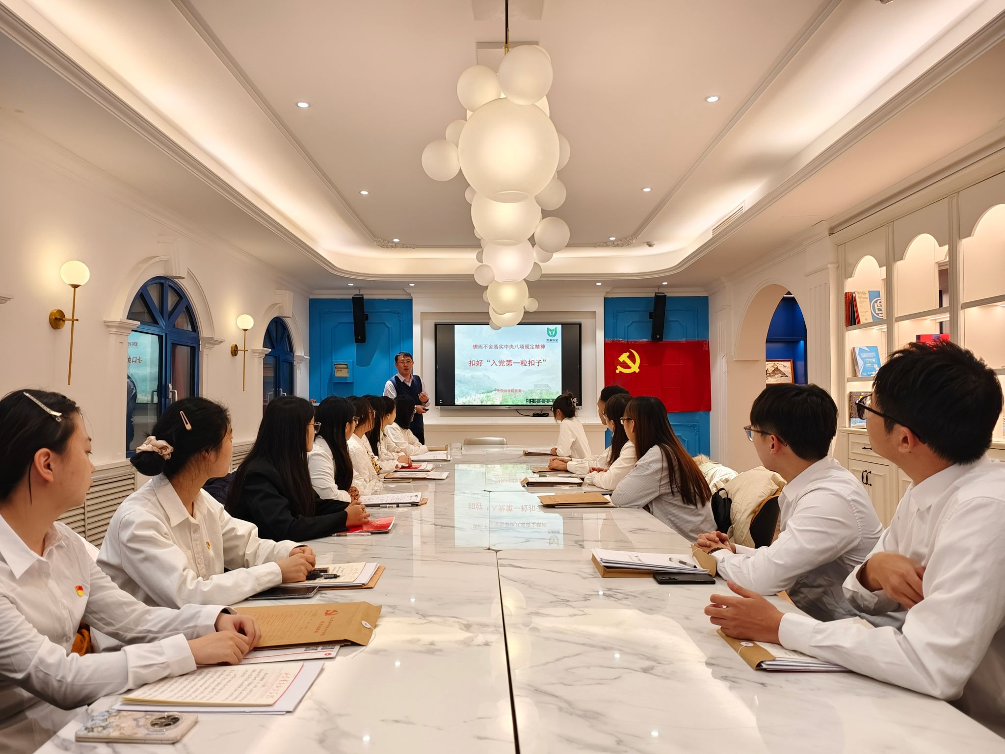 崔师锐为新发展党员讲授了一堂意义深刻的廉洁专题党课。他系统梳理了党的作风建设的历史脉络,从党的百年发展历程中提炼出作风建设的关键节点与演进变革,让新发展党员深刻认识到,廉洁自律既是党的优良传统,更是党始终保持先进性、纯洁性的重要保障。授课中,他紧密结合学生群体实际,通过剖析校园内及学生身边的典型案例,深入浅出地阐释了作风建设在学生党员日常学习、生活以及未来职业发展中的关键作用。同时,他对新发展党员提出三点明确要求:一是坚定理想信念,时刻铭记党的宗旨,将为人民服务的根本理念深植于心;二是增强纪律意识,严格恪守党的各项纪律规定,自觉抵制各类不良诱惑;三是在日常学习生活中以身作则,切实发挥党员先锋模范作用,以实际行动影响和带动身边同学共同进步。