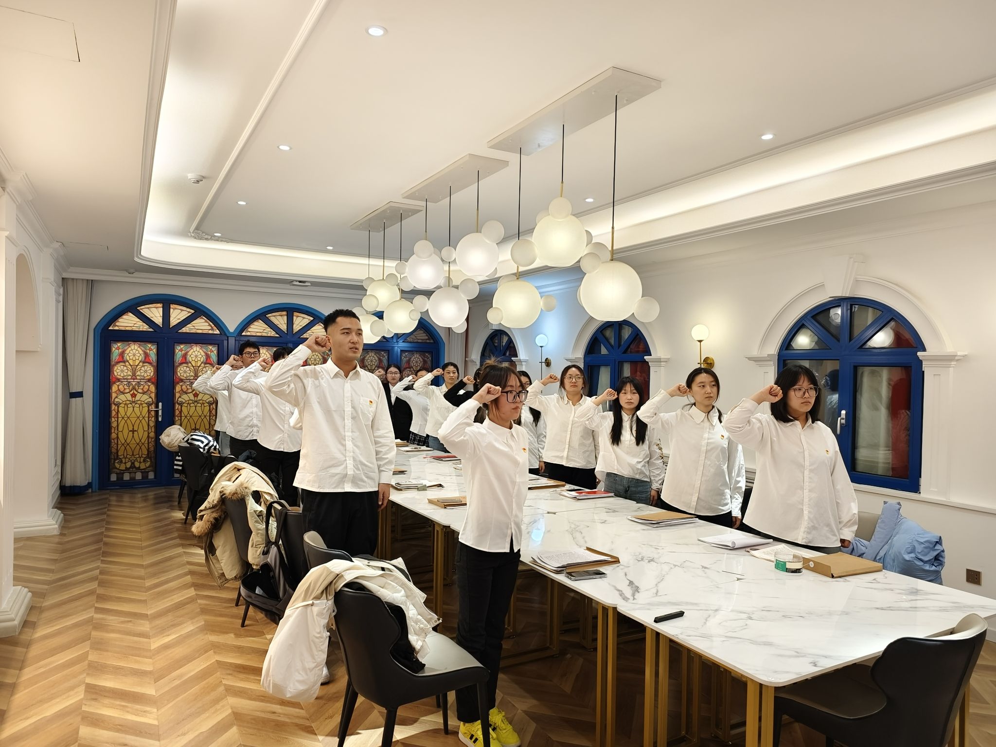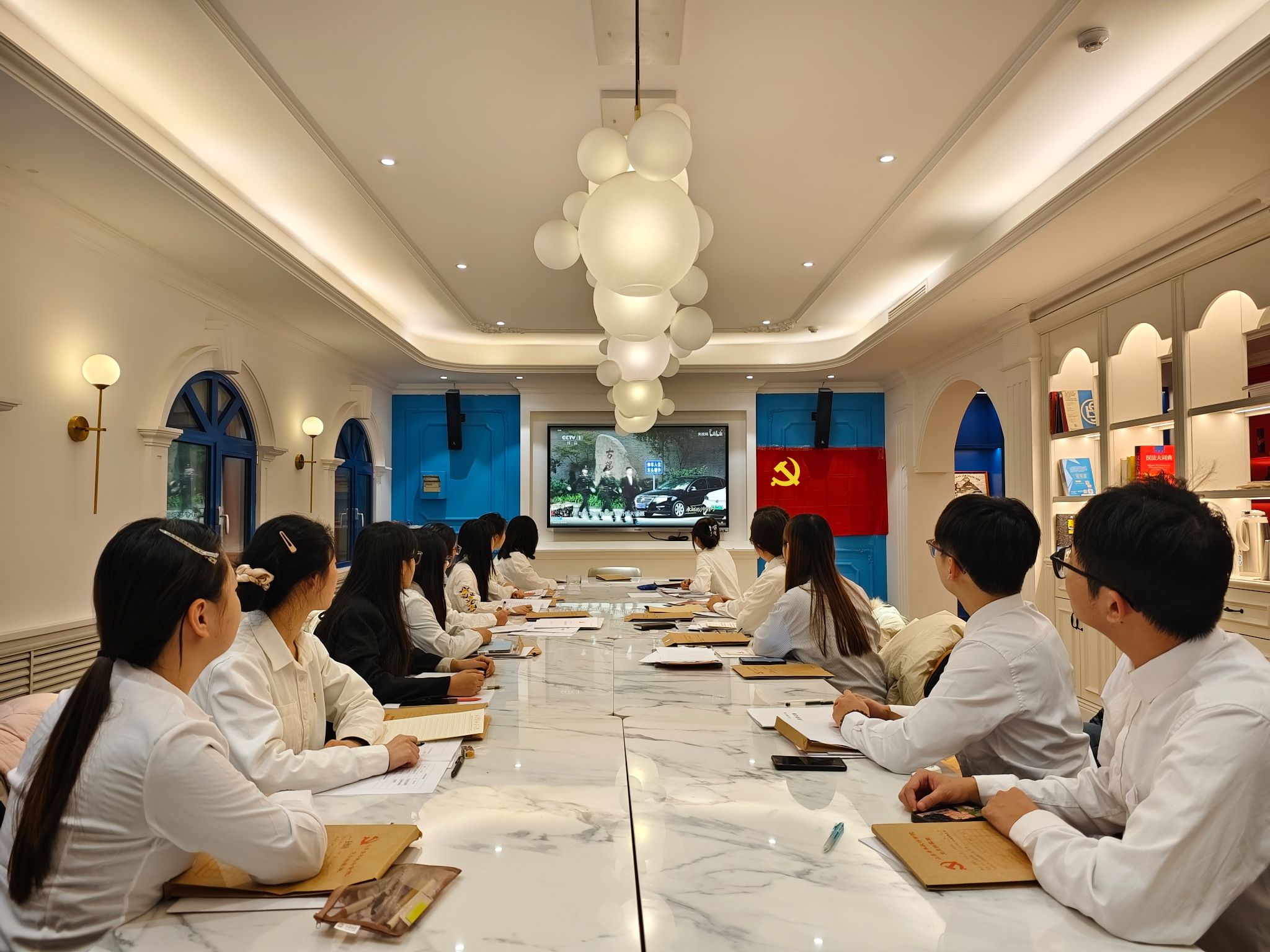 党课后,新发展党员共同观看视频《永远吹冲锋号》。视频讲述了在与以往不同的历史条件下,中国共产党持之以恒推进全面从严治党,以党的自我革命引领社会革命的故事。观看结束后,新发展党员面向党旗庄严宣誓,表达了他们对党的忠诚以及为党的事业奋斗终身的坚定决心。