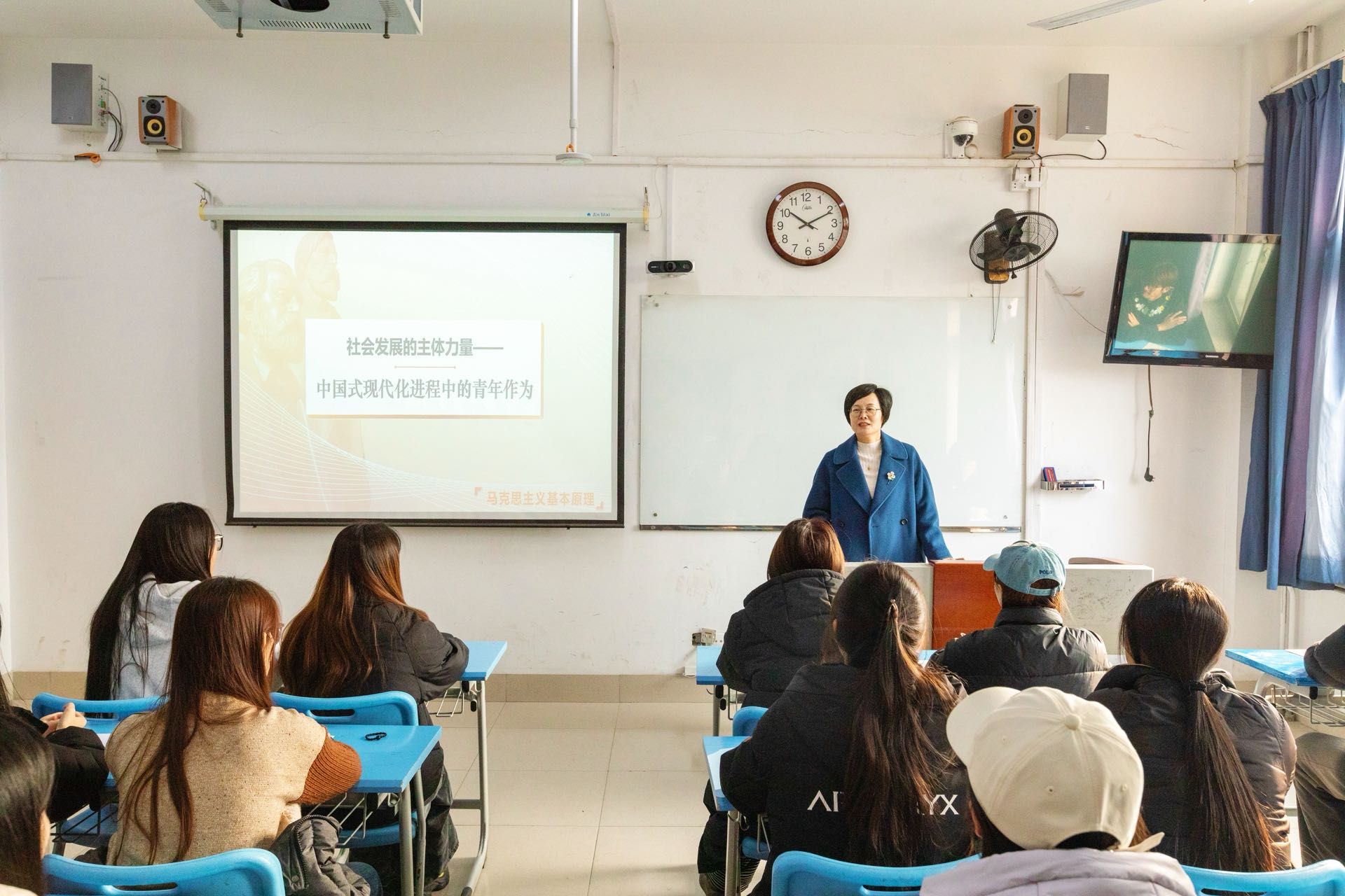 12月19日,学校党委副书记冯素玲以“社会发展的主体力量——中国式现代化进程中的青年作为”为主题,为外国语学院学生讲授了一堂生动深刻的专题思政课,本次思政课旨在引导青年学子深刻把握中国式现代化的核心要义,明确自身在全面建设社会主义现代化国家新征程中的责任与担当。