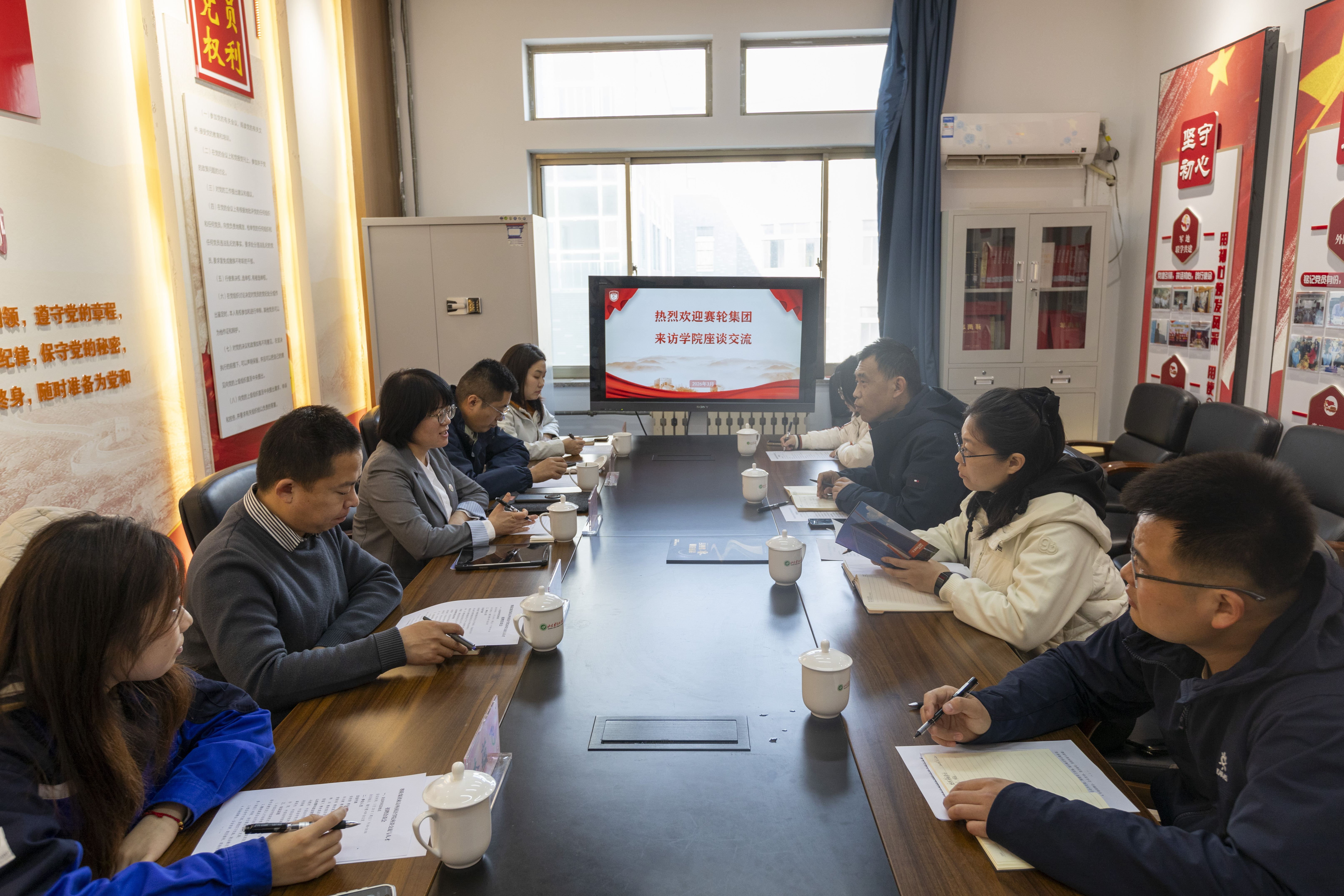 座谈交流,共商校企合作新路径。座谈会上,冯德河代表学院致欢迎辞,对赛轮集团的到来表示热烈欢迎,他详细介绍了学院办学理念、学科专业布局、人才培养特色,重点阐述了阿拉伯语专业建设成果、实践教学优势与毕业生就业发展情况。他表示,学院始终致力于培养具备国际视野、语言应用能力与跨文化沟通能力的复合型外语人才,期待与赛轮集团在实习实训基地建设、毕业生精准就业输送、产教融合协同育人等方面建立长期稳定、深度共赢的合作关系。侯晓倩代表企业发言,全面介绍了集团发展历程、全球化战略布局与海外业务拓展成果,重点解读了埃及公司运营规划、岗位需求及人才培养体系。她指出,随着集团海外业务持续扩张,亟须阿拉伯语专业复合型人才支撑海外运营,热忱欢迎学院优秀学子加入赛轮集团,携手共促发展。