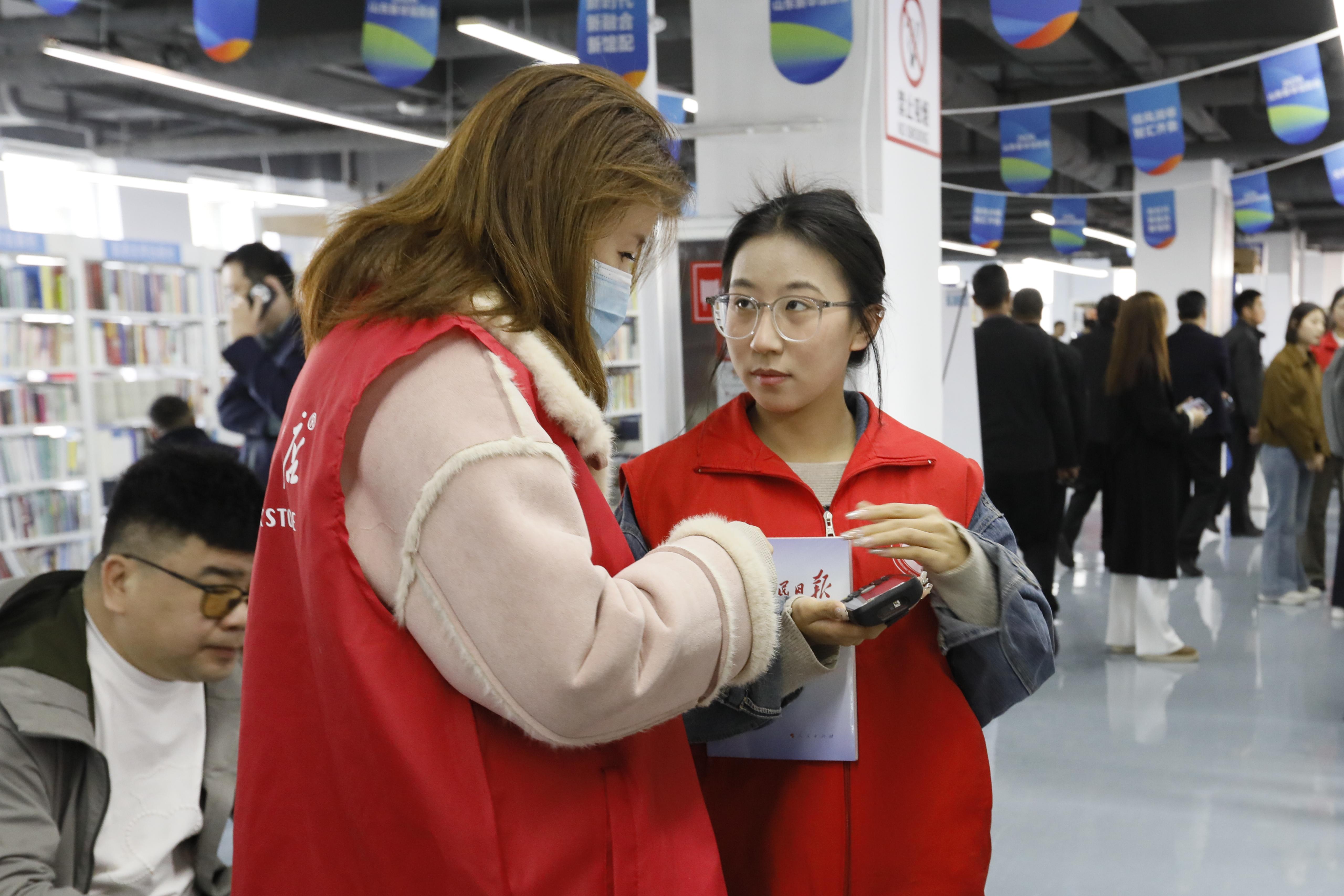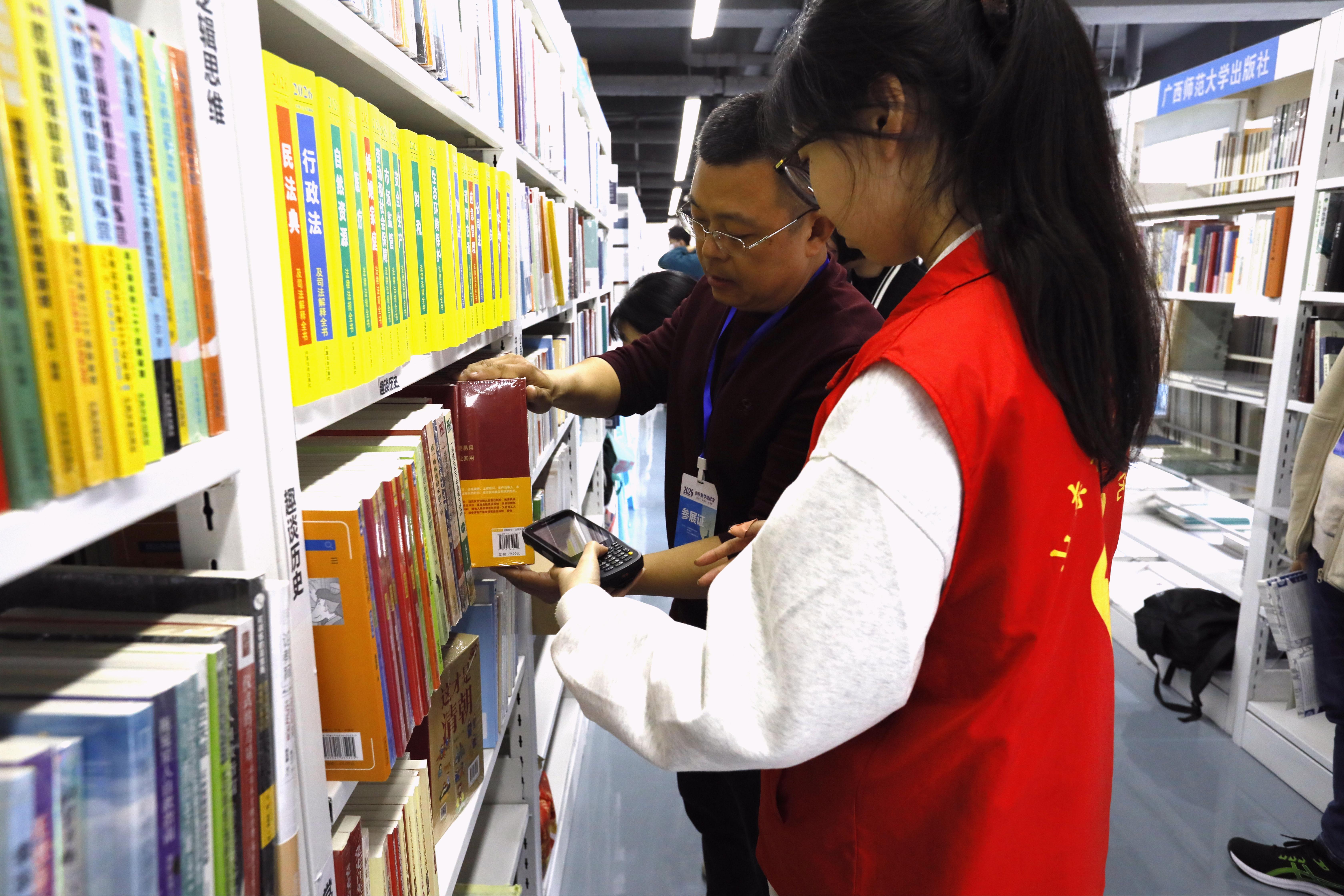书展志愿助采购,细致服务显担当。3月24日,为保障学校教材采购工作高效有序推进,外国语学院组织志愿者前往2026年山东新华馆配会,协助老师开展教材采购相关工作。书展现场,志愿者们全程紧跟老师步伐,根据采购清单精准查找所需教材,认真核对书名、版本、数量等关键信息,做到零差错、无遗漏。在老师选定教材后,志愿者们熟练使用设备逐一扫码登记,高效配合完成采购全流程,为学校教材采购工作的顺利推进提供了坚实助力。志愿者们以认真负责的态度、默契高效的配合圆满完成协助任务,在实践中生动诠释了“奉献、友爱、互助、进步”的志愿精神。